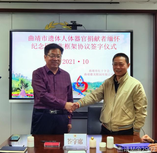 簽約儀式上,市紅十字會(huì)黨組書記介紹了曲靖市遺體人體器官捐獻(xiàn)基本情況。他強(qiáng)調(diào)遺體人體器官捐獻(xiàn)是一種崇高的善舉,是弘揚(yáng)大愛、體現(xiàn)社會(huì)文明進(jìn)步的高尚事業(yè),需要全社會(huì)的支持和參與。簡(jiǎn)要介紹了紀(jì)念園從項(xiàng)目發(fā)起至簽訂建設(shè)協(xié)議的相關(guān)情況,并感謝曲靖德龍陵園有限公司無償奉獻(xiàn)的愛心支持。曲靖德龍陵園有限公司領(lǐng)導(dǎo)高度重視紀(jì)念園建設(shè)相關(guān)工作,表示將按照協(xié)議內(nèi)容認(rèn)真組織完成好紀(jì)念園建設(shè)。
